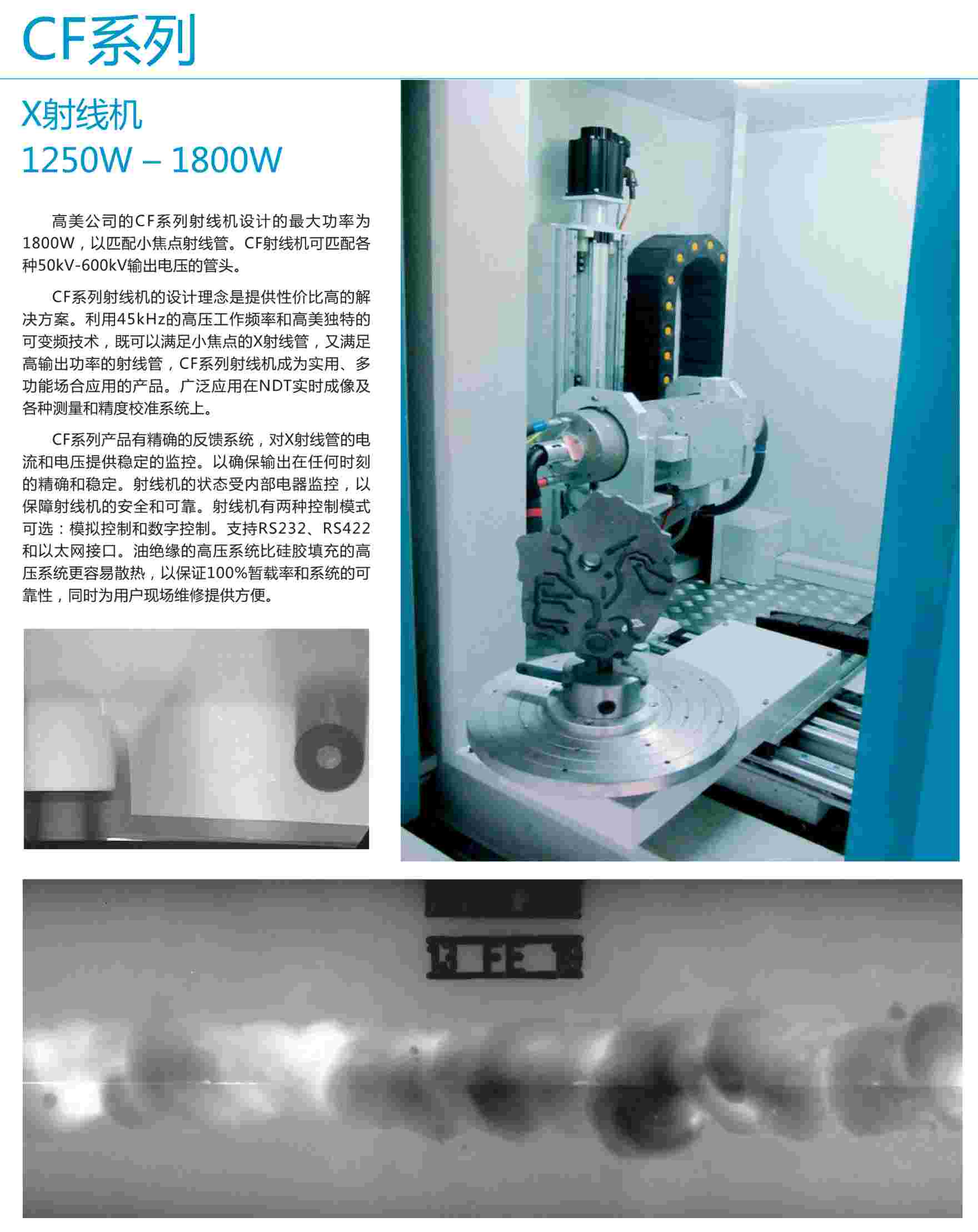 高美公司的CF系列射線機設(shè)計的最大功率為1800W,以匹配小焦點射線管。CF射線機可匹配各種50kv-600kv輸出電壓的管頭。