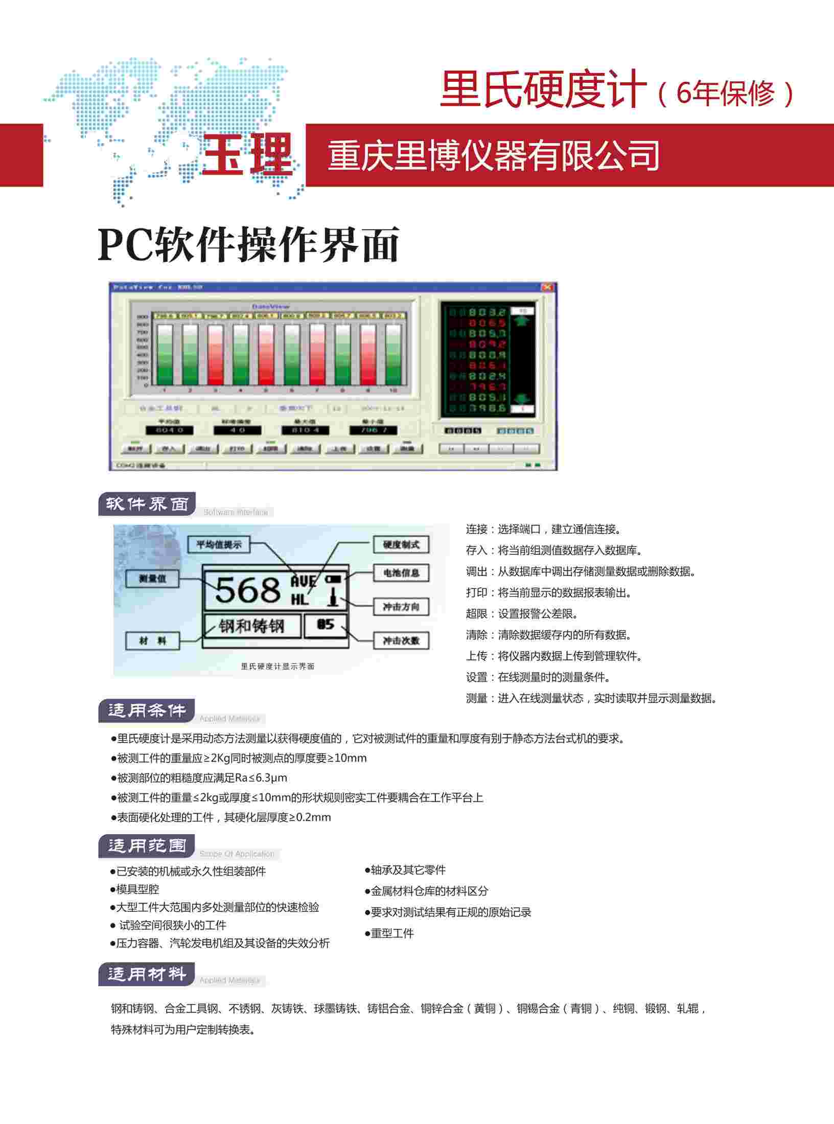 概述 : 該儀器使用中文顯示,菜單式操作,簡單、方便。本機可直接顯示里氏、布氏、洛氏、維氏、肖氏等各種硬度值。儀器小巧、便攜,適用于惡劣的操作環(huán)境,抗振動、沖擊和電磁干擾。