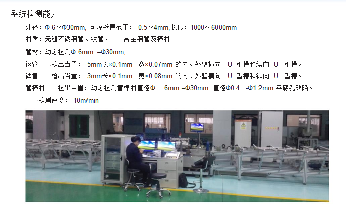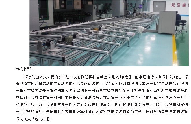 利用:龍門架將探傷主機(jī)及探頭固定,探頭位于龍門架正下方,并依附于龍門架可左右移動(dòng),被測(cè)工件通過下方的導(dǎo)輪虛轉(zhuǎn)式前進(jìn),通過調(diào)節(jié)探頭的高度及夾角可以對(duì)不同管徑及厚度的管材探傷。