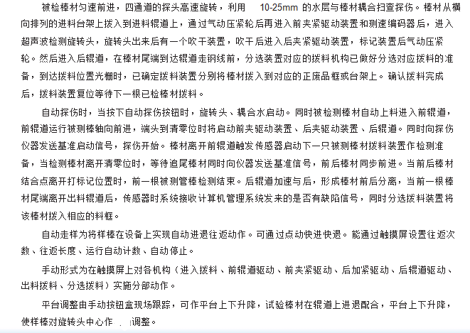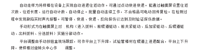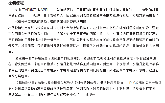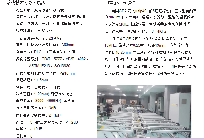 工作方式:工件旋轉(zhuǎn)式前進(jìn),探頭固定探頭位于水槽內(nèi),探傷時(shí)水禮升起,工件下方侵入水槽探頭與彼測(cè)管泊通過循環(huán)水的耦合方式掃查探傷。比較適合石油管道。
