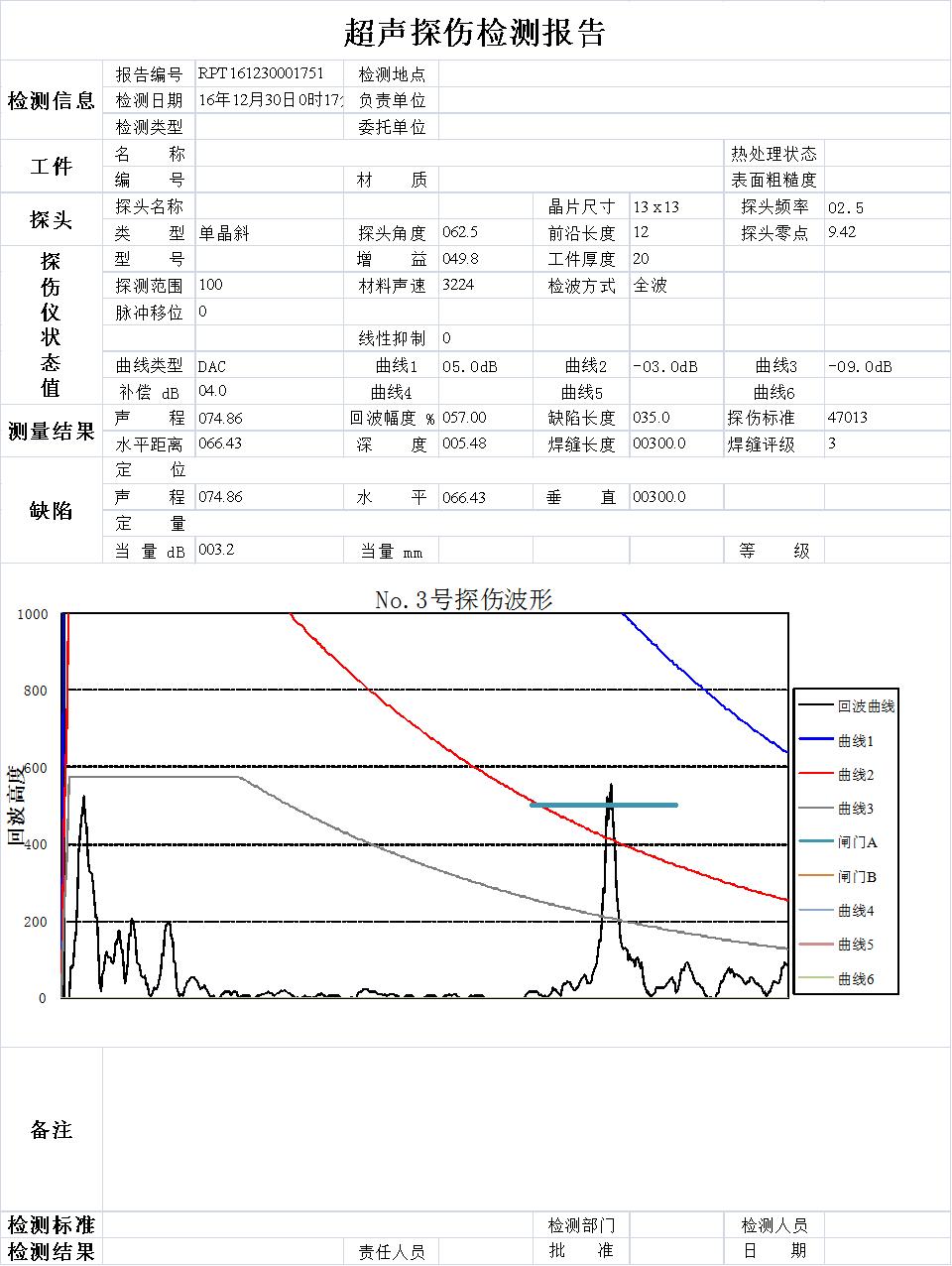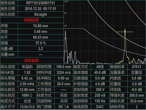 除了能現(xiàn)場藍牙無線連接,手機APP生成探傷報告,并實現(xiàn)現(xiàn)場打印報告之外,還能通過U盤連接電腦生成帶有智能評級的EXCEL格式的探傷報告。