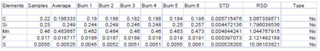 以PMI-MASTER Smart對(duì)石化行業(yè)有要求的低硫磷20#鋼管件中硫磷含量是否達(dá)標(biāo)進(jìn)行檢測(cè)驗(yàn)證,分析結(jié)果如下:
