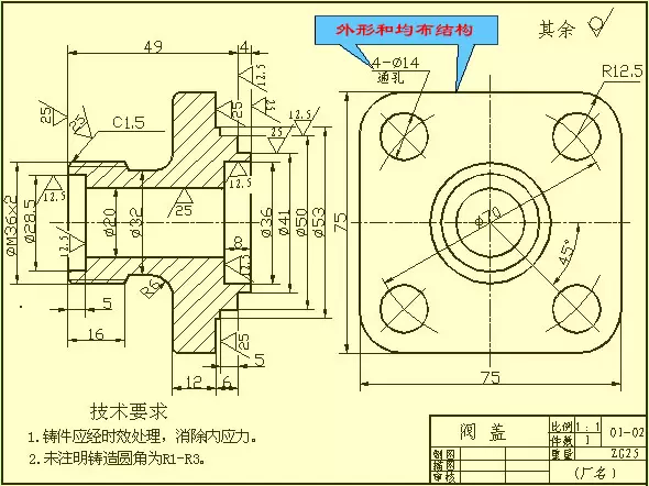用鑄造的方法制造零件毛坯時,為了便于在砂型中取出模樣,一般沿模樣拔模方向作成約1∶20的斜度,叫做拔模斜度。因此在鑄件上也有相應的拔模斜度,這種斜度在圖上可以不予標注,也不一定畫出,如下圖所示;時,可以在技術(shù)要求中用文字說明。