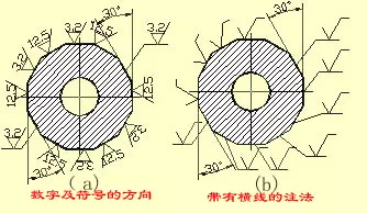 ?。?)表面粗糙度代號中數(shù)字及符號的方向按規(guī)定標注。