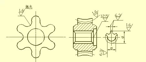 如圖中所示的表面粗糙度為Ra6.3的右軸肩,被選為長度方向的主要尺寸基準