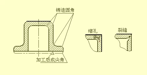 當零件的毛坯為鑄件時,因鑄造工藝的要求,鑄件表面相交的轉(zhuǎn)角處都應做成圓角。鑄造圓角