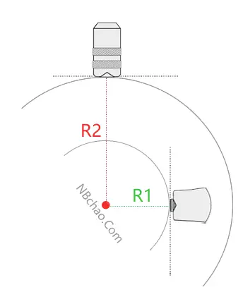 如圖所示,一般情況下,R1能測(cè)的曲面涂層,也同樣適用于R2的曲面涂層,反之,R2能測(cè)的曲面涂層則不一定能適用于比之更小的R1被測(cè)物涂層。