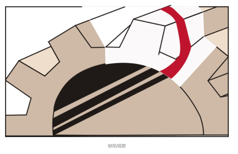 5. 觀察材料表面缺陷,在被測(cè)材料表面噴涂顯像劑后,觀察材料表面,直至跡痕的大小不發(fā)生變化為止。必要時(shí)可進(jìn)行多次探傷。