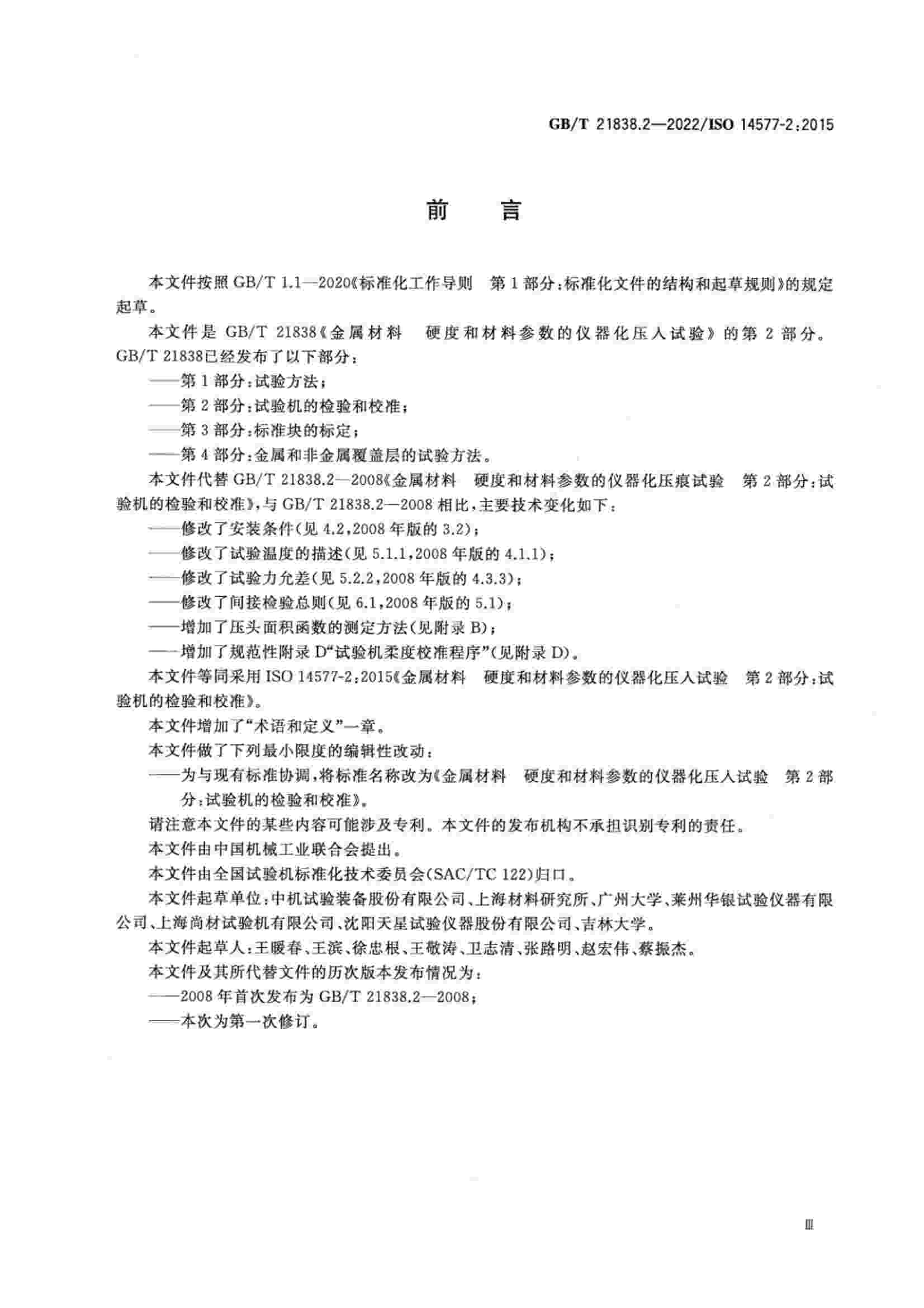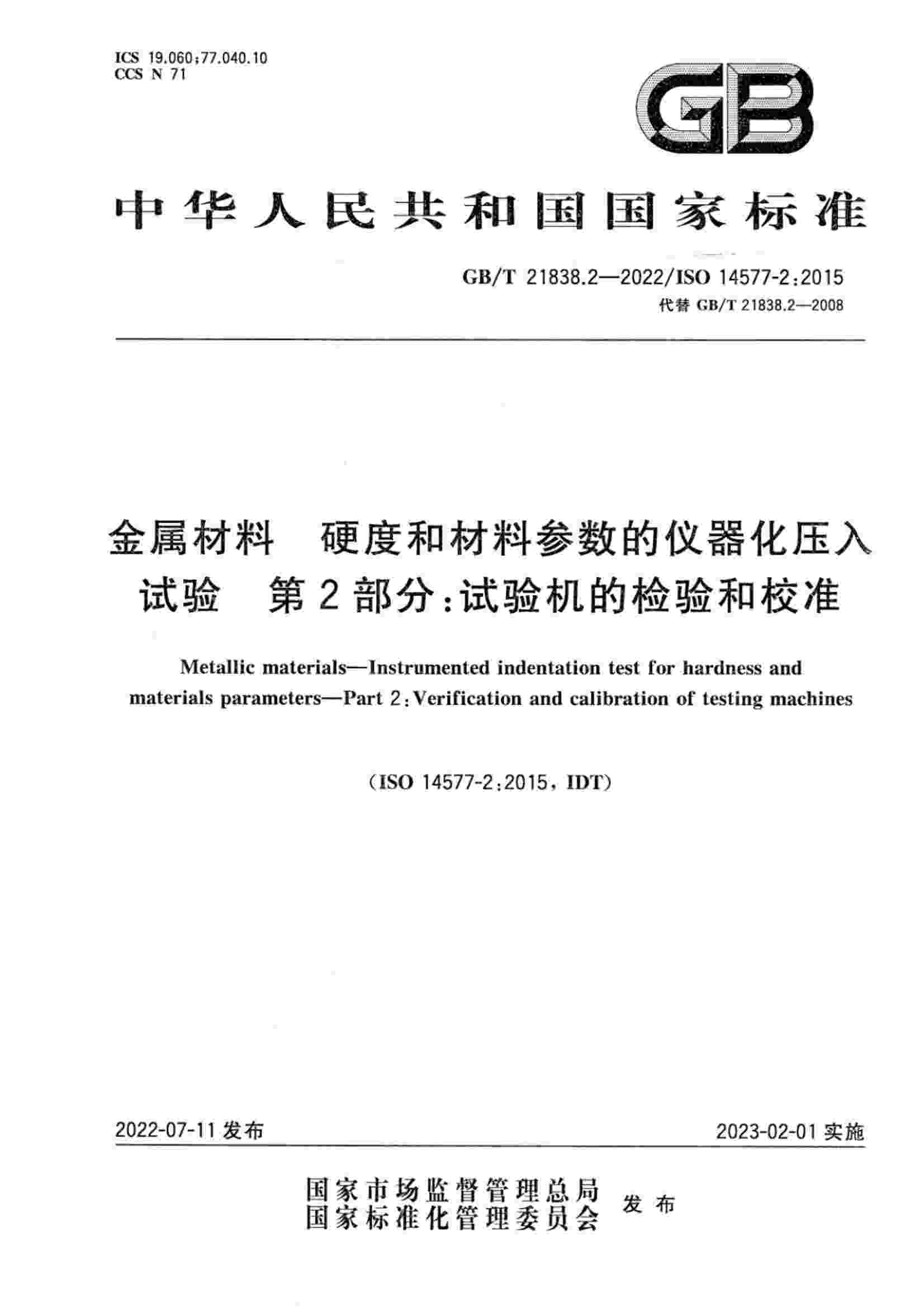 《GBT 21838.2-2022 金屬材料 硬度和材料參數(shù)的儀器化壓入試驗 第2部分:試驗機(jī)的檢驗和校準(zhǔn)》