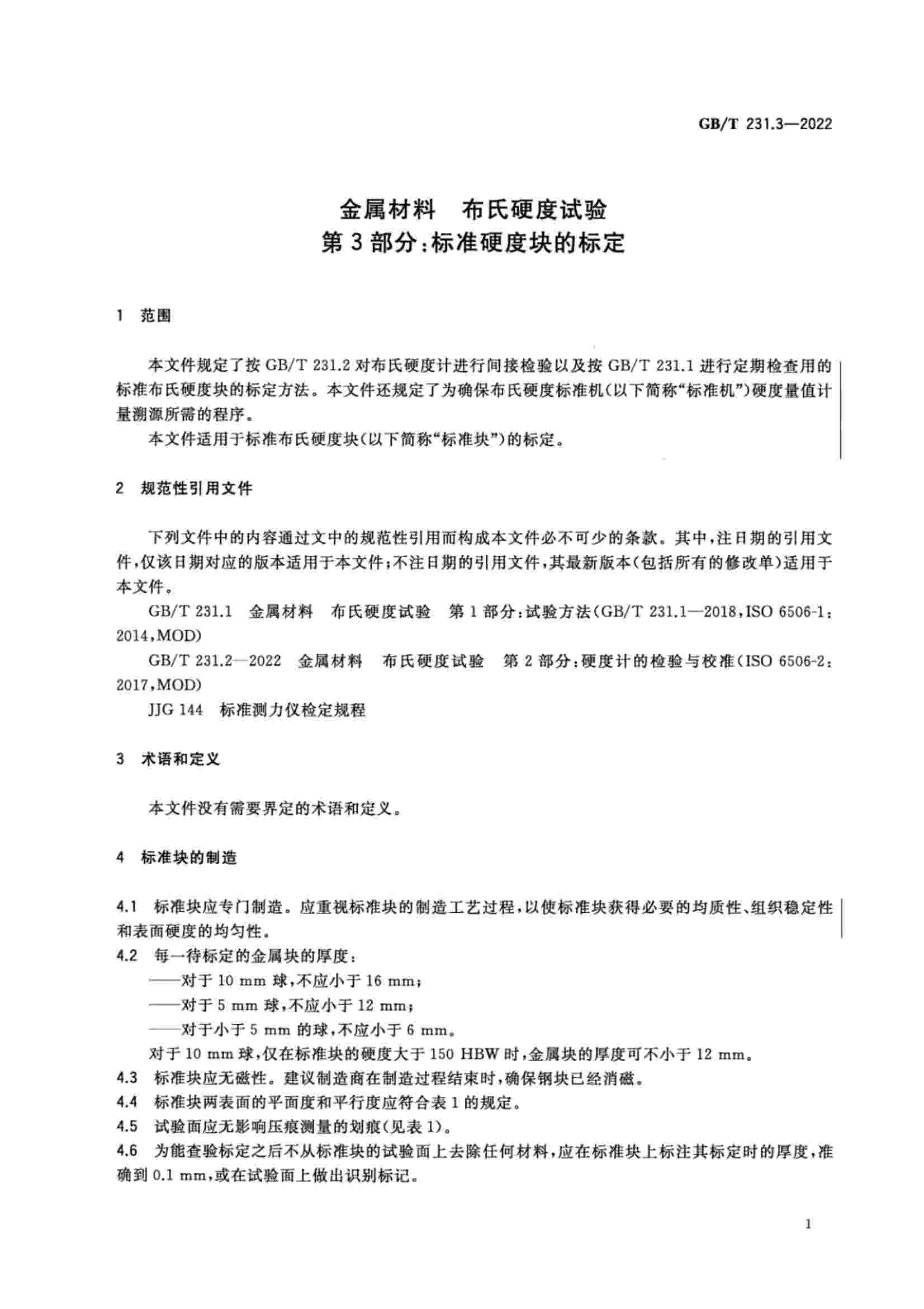 GBT 231.3-2022 金屬材料 布氏硬度試驗 第3部分:標(biāo)準(zhǔn)硬度塊的標(biāo)定