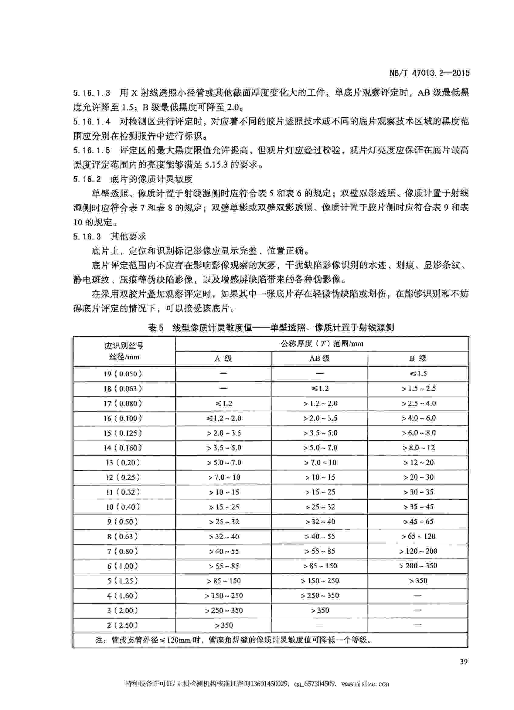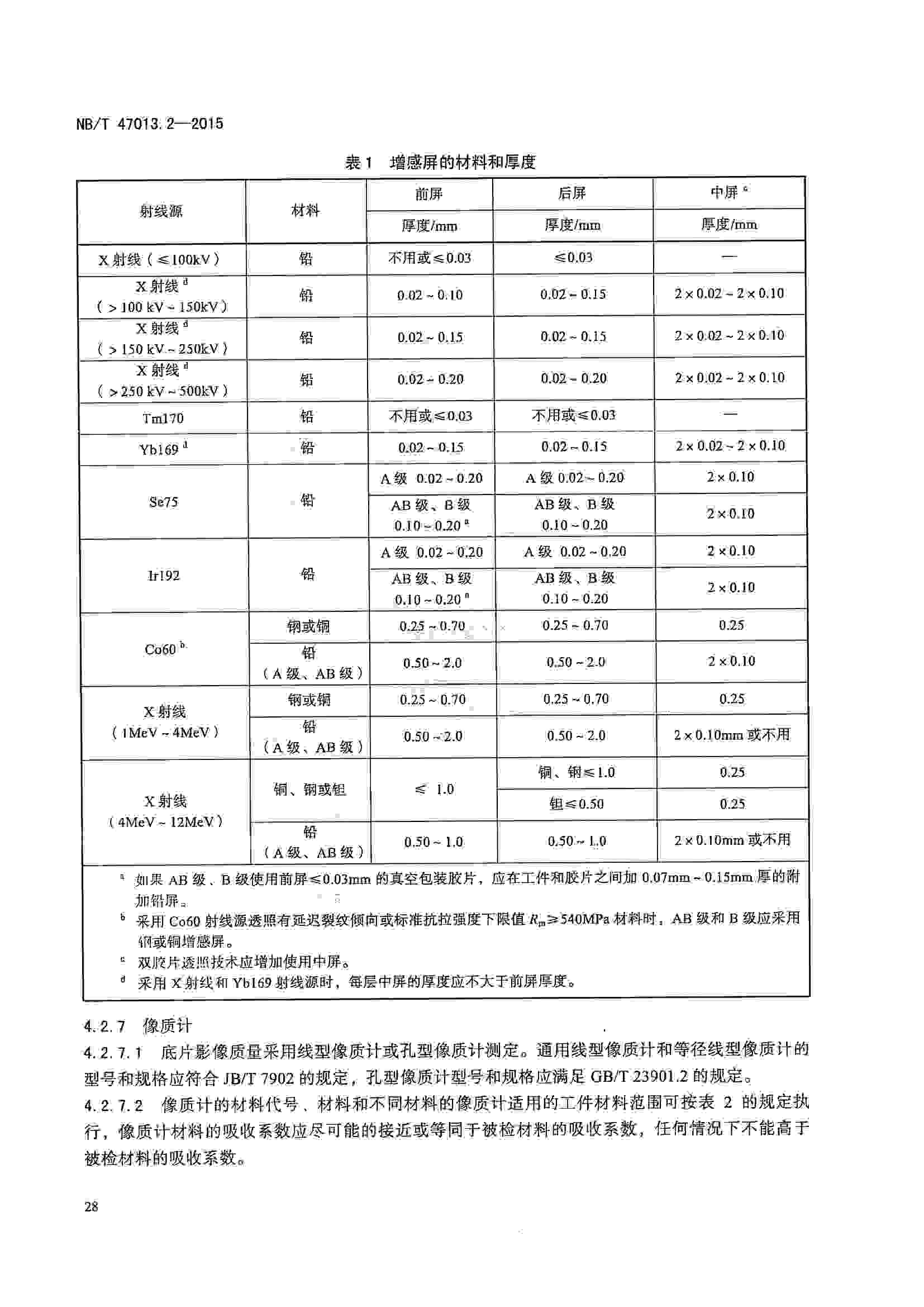 NB/T47013-2015 承壓設(shè)備無(wú)損檢測(cè) 第2部分:射線檢測(cè)