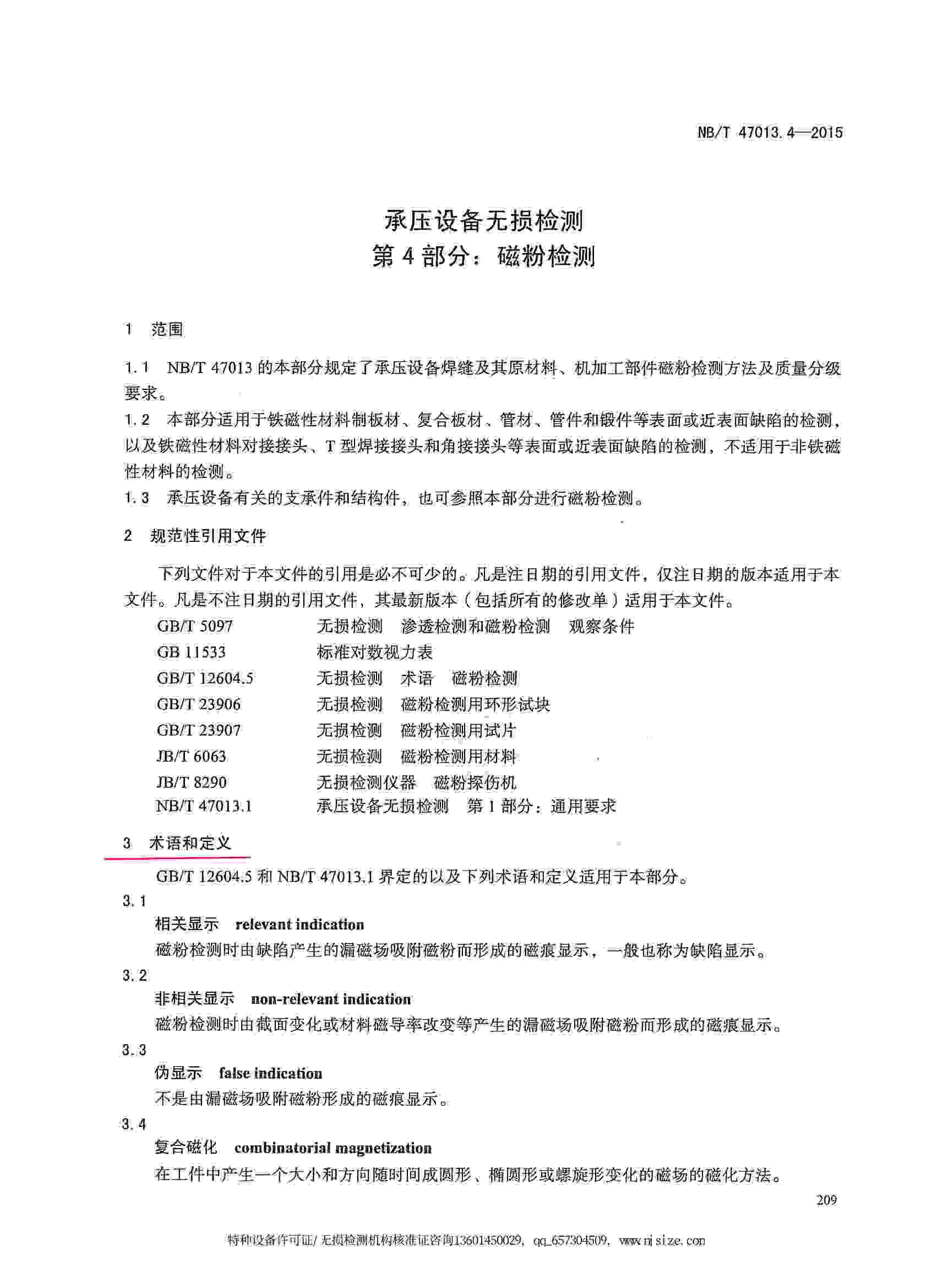 NB/T47013.4-2015 承壓設(shè)備無損檢測 第4部分:磁粉檢測