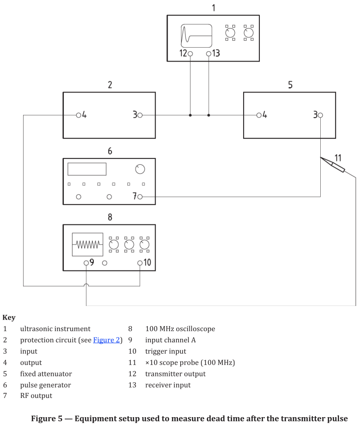 見(jiàn)EN12668.1:2010和ISO22232-1-2020中的相應(yīng)部分,得出的是時(shí)間,一般要求是不大于10μs。ISO22232-1-2020規(guī)定的測(cè)試示意圖如下: