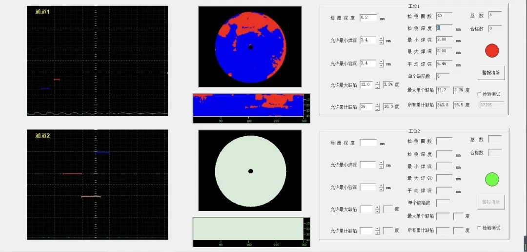 探傷缺陷OK及NG自動判定、聲、光報(bào)警