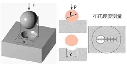布氏硬度測(cè)量原理:采用直徑為D的球形壓頭,以相應(yīng)的試驗(yàn)力F壓入材料的表面,經(jīng)規(guī)定保持時(shí)間后卸除試驗(yàn)力,用讀數(shù)顯微鏡測(cè)量殘余壓痕平均直徑d,用球冠形壓痕單位表面積上所受的壓力表示硬度值。實(shí)際測(cè)量可通過(guò)測(cè)出d值后查表獲得硬度值。