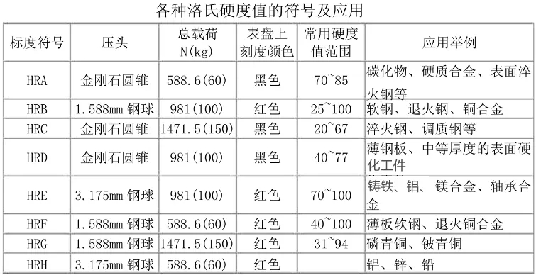 用于洛氏硬度測(cè)量條件:洛氏硬度可以測(cè)量從軟到硬較大范圍的硬度值,根據(jù)被測(cè)對(duì)象硬度值