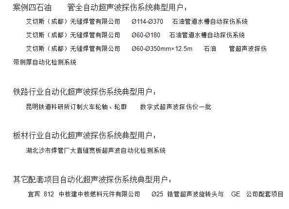 工作方式:工件旋轉(zhuǎn)式前進(jìn),探頭固定探頭位于水槽內(nèi),探傷時(shí)水禮升起,工件下方侵入水槽探頭與彼測(cè)管泊通過(guò)循環(huán)水的耦合方式掃查探傷。比較適合石油管道。