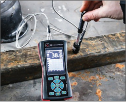 該儀器采用超聲接觸阻抗法(UCI),符合ASTM A1038標(biāo)準(zhǔn),是一種非直接測量壓痕的動態(tài)壓入法。端部鑲有特定壓頭(如金剛石壓頭)的振動桿受到激勵(lì)做縱向超聲振動,用一定的試驗(yàn)力將壓頭壓入試驗(yàn)表面,振動桿的縱向振動將受到阻抗,諧振頻率發(fā)生變化,從而得出硬度值。這種硬度測量方法已經(jīng)在各國大范圍使用,并且已經(jīng)在工業(yè)領(lǐng)域使用了50多年。