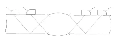 1.2.3 2 次波檢測時, 可用手指沾油拍打遠(yuǎn)離探頭側(cè)的焊角, 焊角回波會明顯跳動。