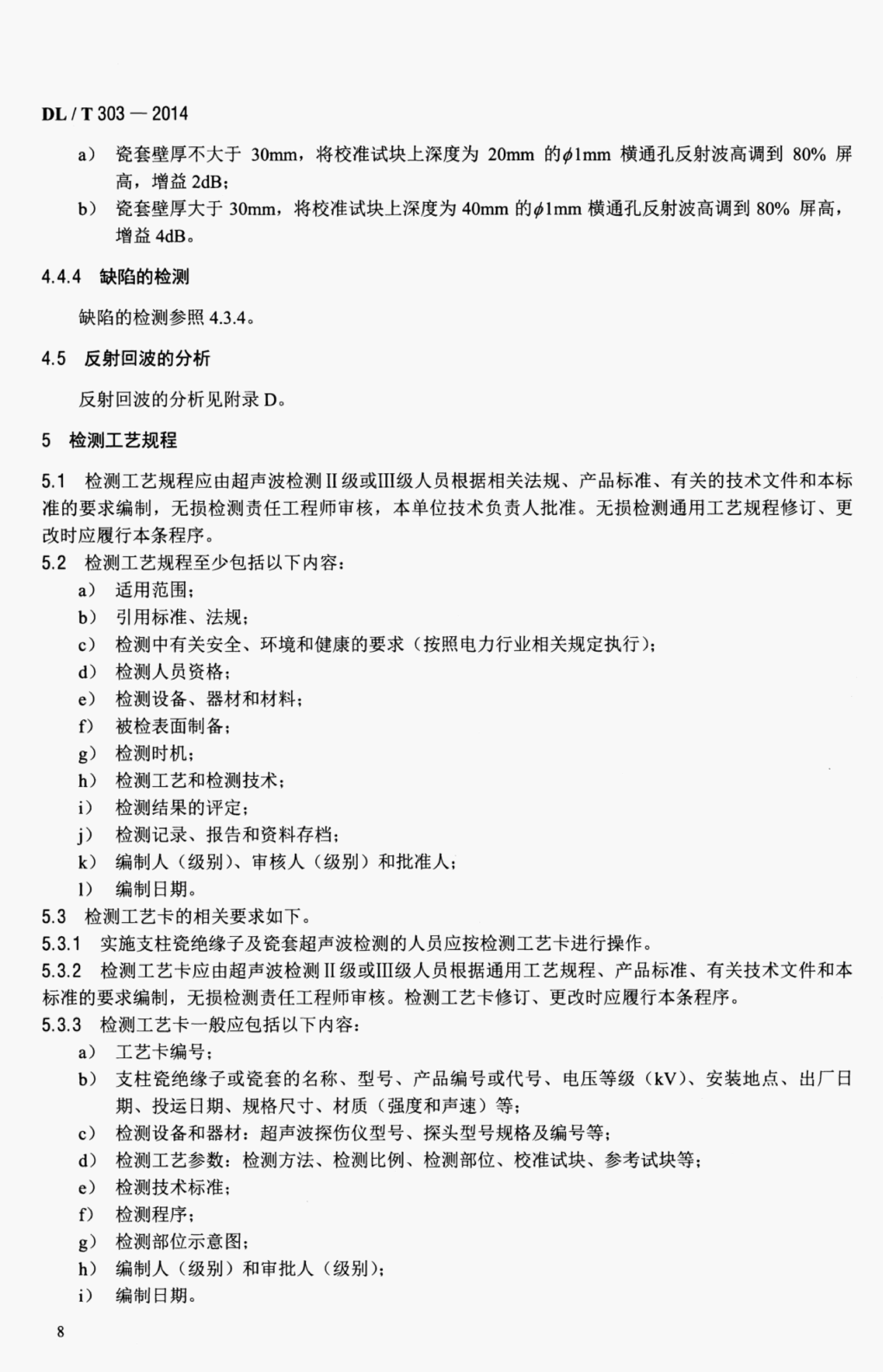 DL/T 303-2014 電網(wǎng)在役支柱 瓷絕緣子及瓷套 超聲波檢測(cè)